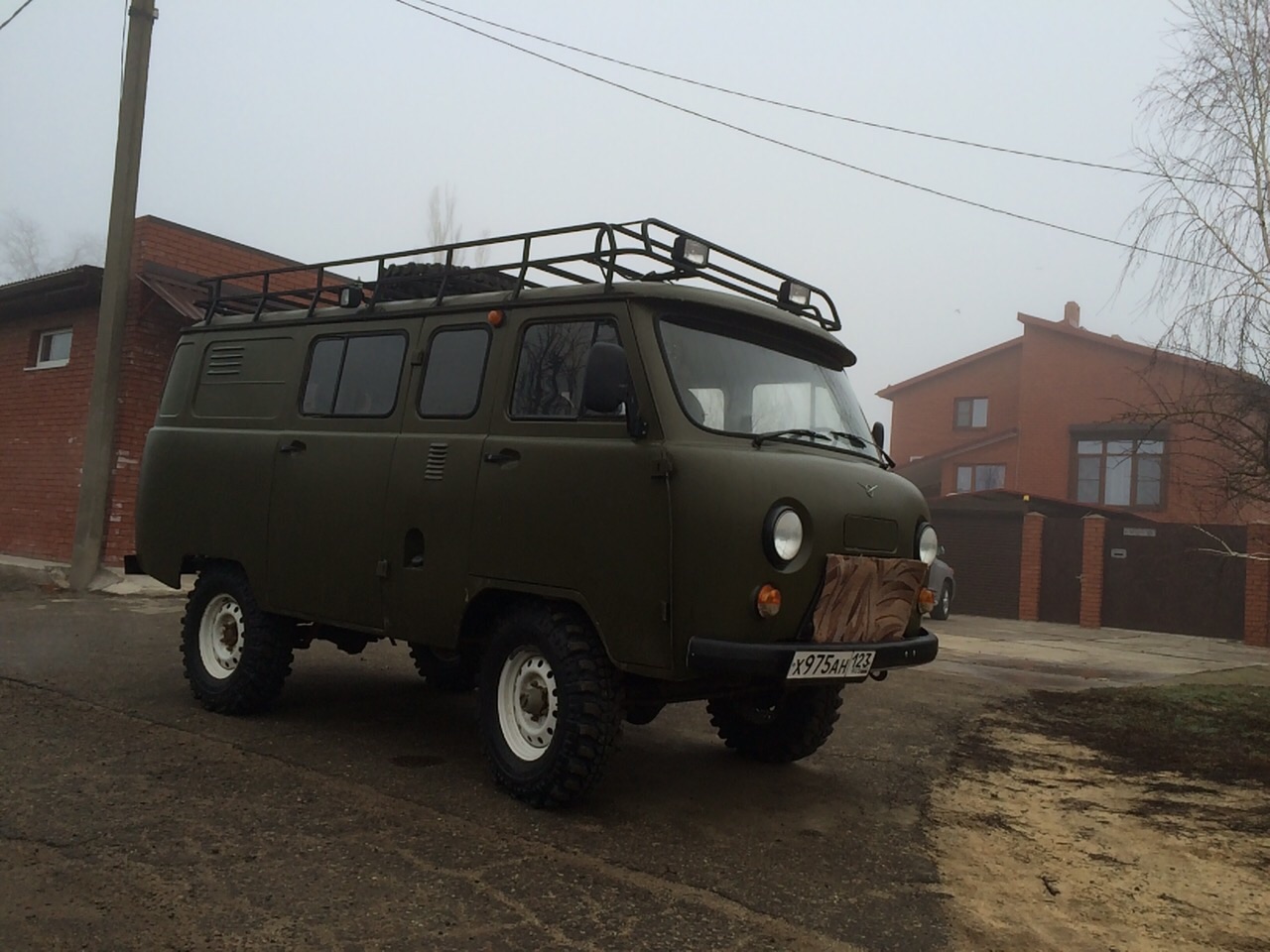Продаётся УАЗ 452 Буханка. В хорошем техническом состоянии после кап-ремонта (пробег 500 км). Подготовлен для охоты и рыбалки, оборудован: багажником, лестницей, дополнительным световым оборудованием по периметру снаружи и внутри салона. Газовые амортизаторы, подрезаны арки под колёса большого диаметра. Передний и задний самоблокирующиеся мосты, хабы, передние дисковые тормоза, водительское и пассажирское сидения мягкие с подголовниками (нового образца водительское регулируемое полоджение спинки и на салазках) в пассажирском отделе салона 2 ряда мягких сидений по 3 сидения мягкие (так же нового образца с подголовниками) и раскладывающийся столик (как в купе пассажирского поезда). Коммутатор перенесён со штатного места на панель за водительским сидением, установлен включатель массы. Резина Simex Extreme Trekker (новая пробег 4000 км по грунтовым дорогам) вне дорожная грязевая.