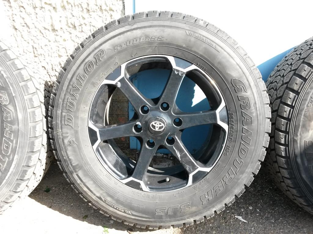 Продам комплект дисков с резиной Dunlop Grandtrek SJ5 265/65 R17. Диски литые 6*139,7. Диски ровные, резина без порезов и грыж. На дисках облезает лак.