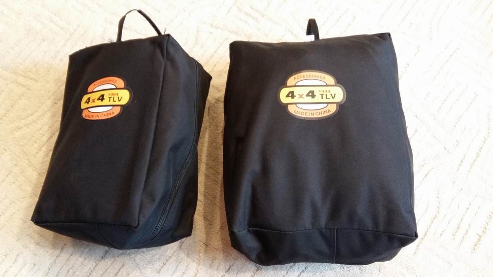 Сумки имеют молнию, систему крепежей, ремни, ручки. Сама сумка находится в сумке-чехле, в которую после можно положить трос и другие мелочи.