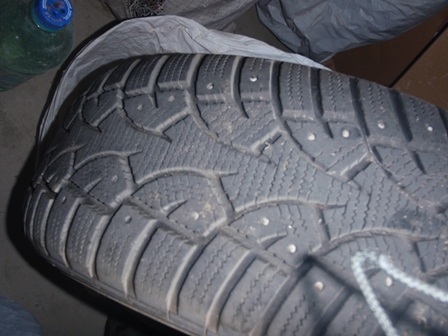 Померил глубину протектора на Пилигримах, 2 шины 9-10мм, 2 шины 3-9мм.