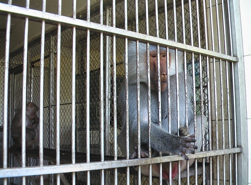 Сначала - обезьяны. Их здесь пока 320. Взрослый входной билет - 150, детский 100 руб. Обезьяны забавные и наглые. Институт действует в четверть силы. Многие корпуса до сих пор восстанавливаются. Кормим обезьянок, а когда всё съедено - едем дальше.