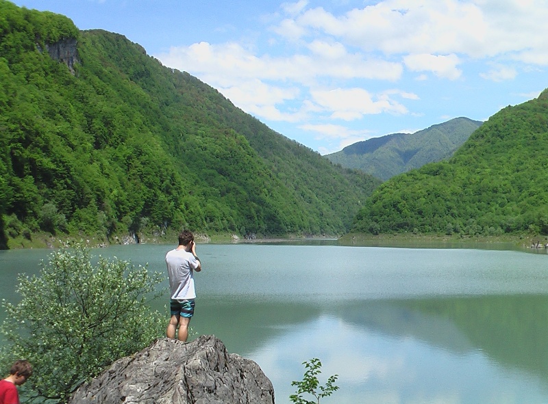 В селе Цебельда немножко плутаем. Здесь должен быть поворот на озеро. Гармин в этом районе часто подводит «эрудиция» - то мы едем по несуществующей дороге, то пытаемся отыскать проезд там, где его никогда не было. Но язык до Киева доведёт. Знакомимся с местным жителем Геннадием и его женой Мананой. Получаем наставления по дальнейшему пути – «всё время прямо, в конце налево». Примерно так и было, если не считать, что «прямо» - это многочисленные повороты туда-сюда и куча примыкающих дорожек. Однако мы ехали «по главной».