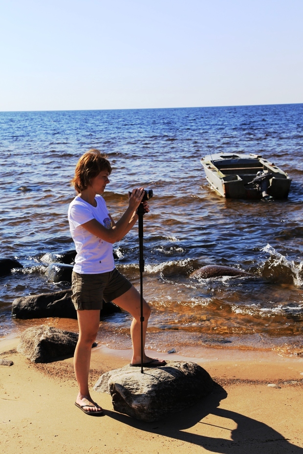 Ночевка на берегу Белого моря не удалась. Зато мы нашли прекрасное место на реке Кемь. Это был бывший когда-то причал: короткий мол, сложенный из камней и бревен и затянутый грунтом. Открытое место гарантировало от нашествия комаров. И съемку можно было делать не сходя с места: